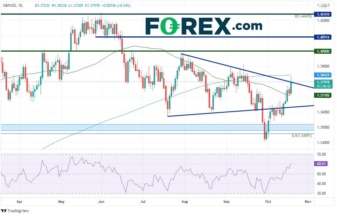 我们在《一周重点关注货币对》的文章中指出,由于英国央行近期不断表达对上升通胀的担心之情,英镑/美元最近一直在上涨。受英国央行评论的影响,市场目前甚至计入11月加息25个基点。而英国央行债券购买计划的到期时间是年底。周三的通胀数据或给出英国央行11月4日如何选择的线索。英镑/美元周二止步于略低于200天均线所在的1.3843,即1.3833高点。如果周三公布的通胀数字高于预期,可望推动英镑/美元上攻1.4000。