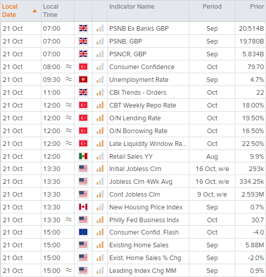 美国主要经济日程为英国夏令时13:30的失业金申领数据。失业金申领人数处在19个月以来最低水平,只有意外大幅攀升,才能惊扰到市场走势。若数据报在类似低值,延续此前趋势,则将助力支撑情绪 (所以人数意外增长可能带来更为明显的市场反应)。