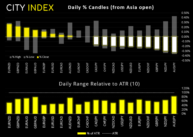 评级机构惠誉对29家中国房地产开发商进行了更为严格的审查,该消息似乎导致资金突然流入日元,多个交叉盘自(过涨)高点回落。