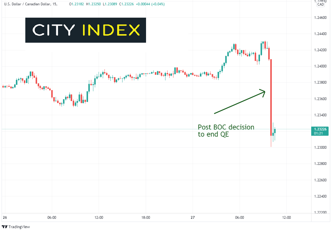 加拿大央行今天宣布退出每周20亿加元的购债计划,市场对此倍感意外