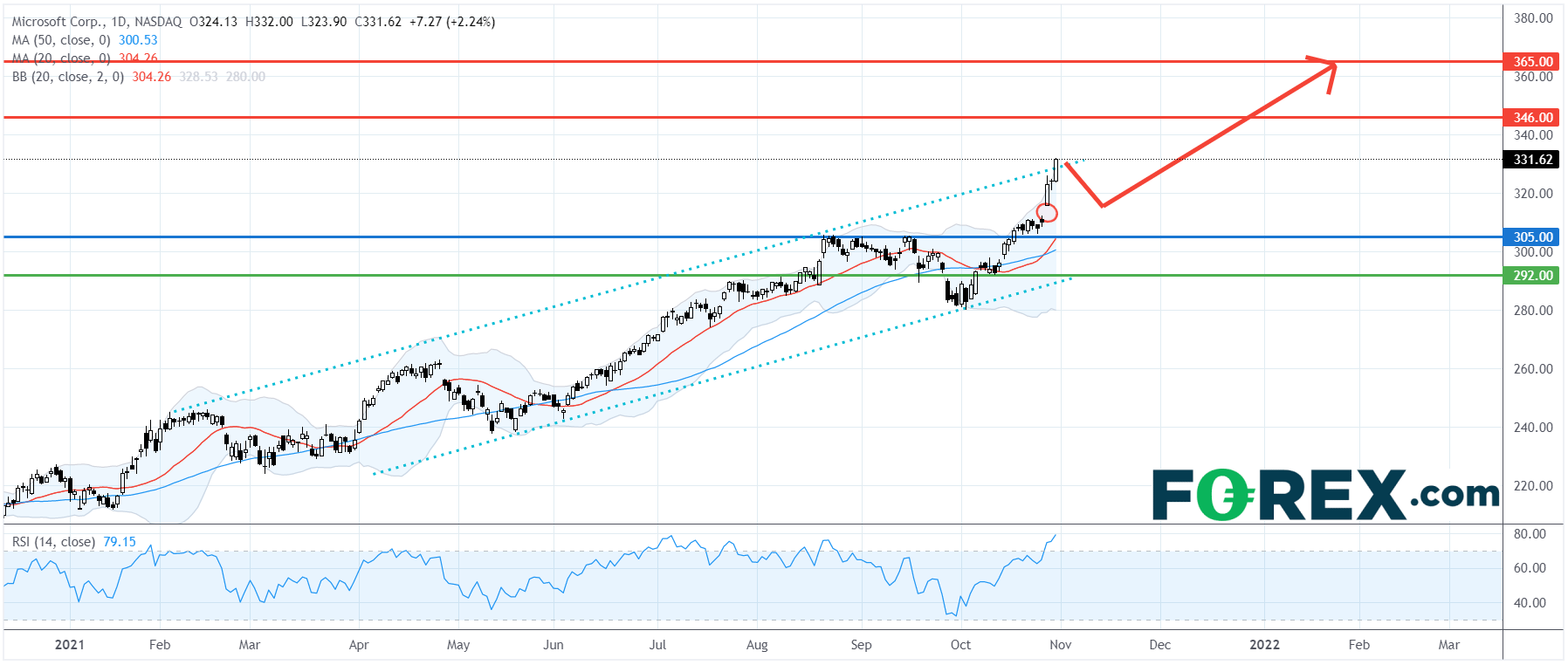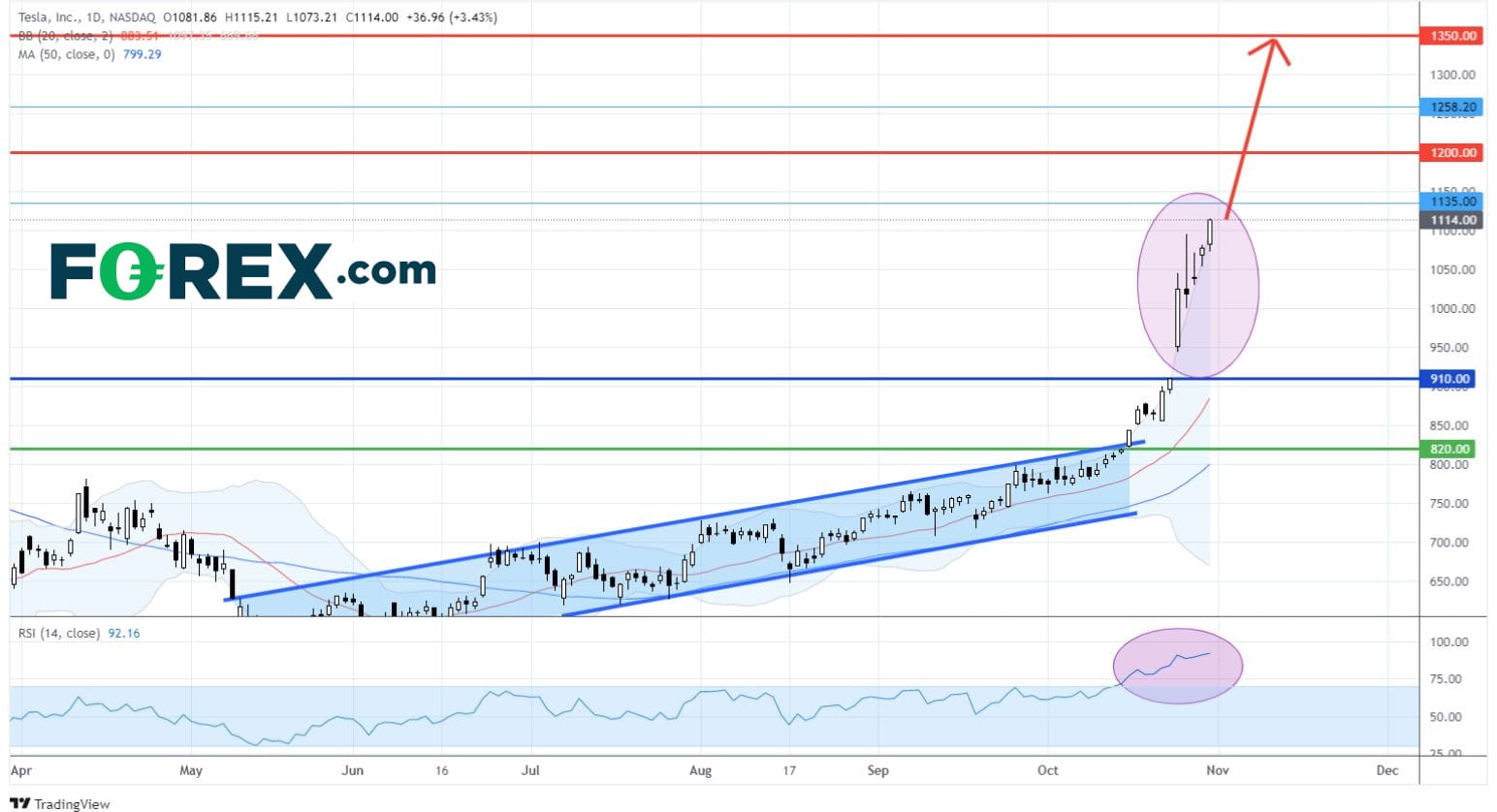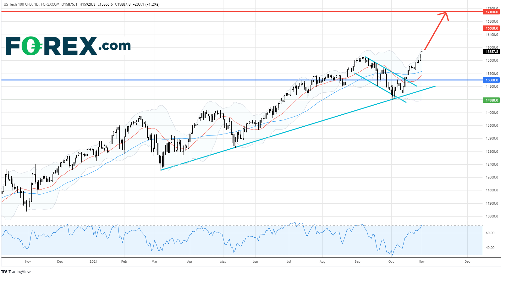 美国科技股100指数CFD创新高 特斯拉 (TSLA.US) 进入超买区 、苹果公司(AAPL.US)和微软(MSFT.US)看涨 惟脸书(FB.US)仍看低一线
