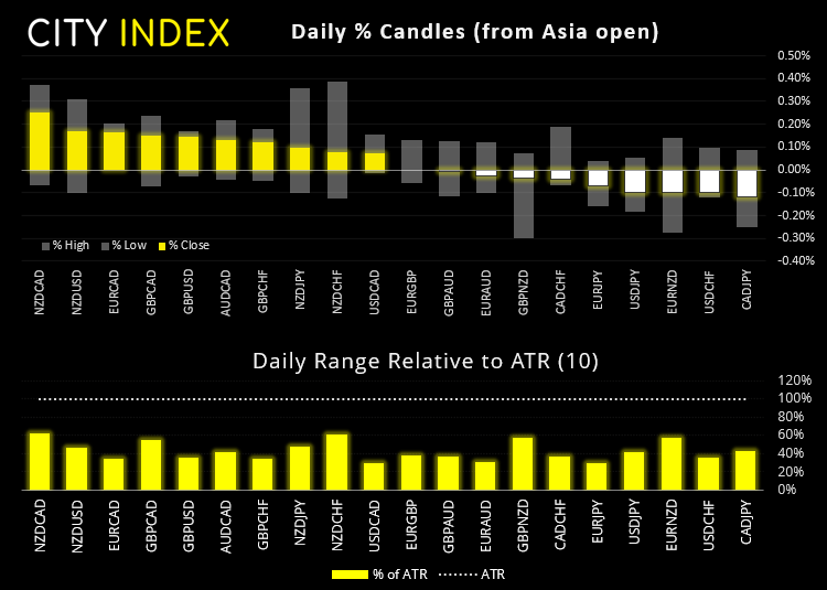 期货市场小幅走低,暗示现货市场开盘略微下挫,但疲弱程度尚不足以引发担忧。富时100指数延续周一涨势,构筑横跨周一区间的看跌吞没K线。在高成交量背景下的收跌表明高点附近形势严峻。但STOXX 50指数已升至13年新高,我们在4250附近缺口支撑上方继续看涨。