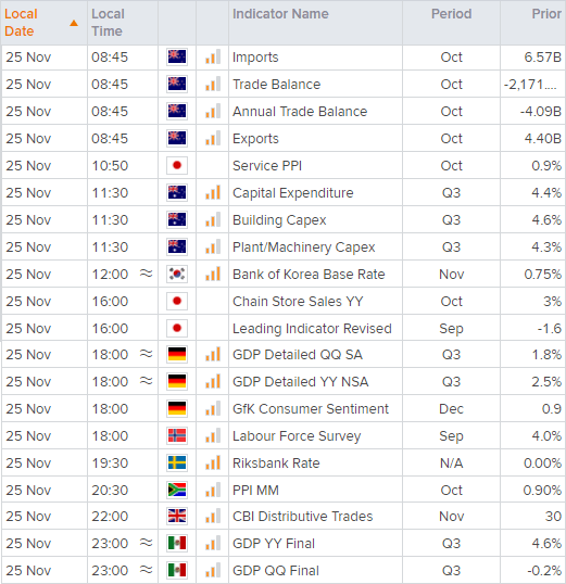 对美联储做出更积极回应的押注造就隔夜最强主要货币美元。澳元/美元因投资者预期澳元正值息差优势丧失而跌破0.7200。但因为美国现在实际上已进入感恩节长周末假期,我们一直没有真正得到任何新的通胀消息。澳元/美元有可能在周末前守住其9月低点。