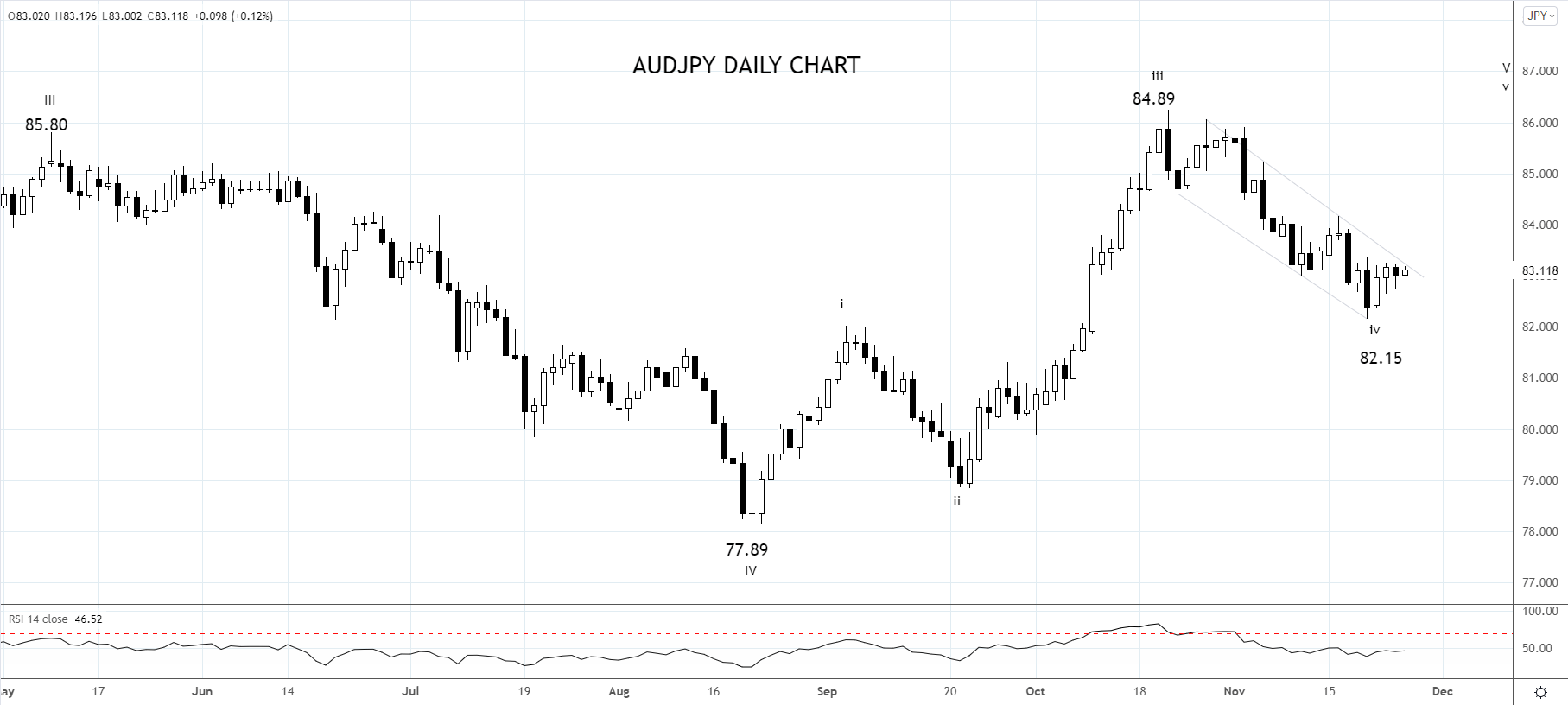 若澳元/日元能升穿下行阻力位及本周高点83.30/40区域,那么考虑做多该交叉盘,寻求汇价反弹攻向初始阻力位84.25/50,然后是85.00。