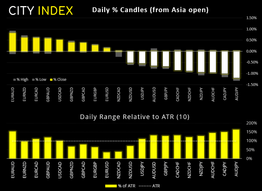 虽然瑞郎和日元买盘旺盛,但瑞郎/日元推低这一事实告诉我们,日元才是交易员首选避险投资。随着美元/日元重回115下方,美元今天难逃一跌。外汇交易员的风险衡量指标澳元/日元则交投于8之下。澳元/日元仍处于看跌通道,我们料其将继续承压,这也是今天值得关注的重点货币对。