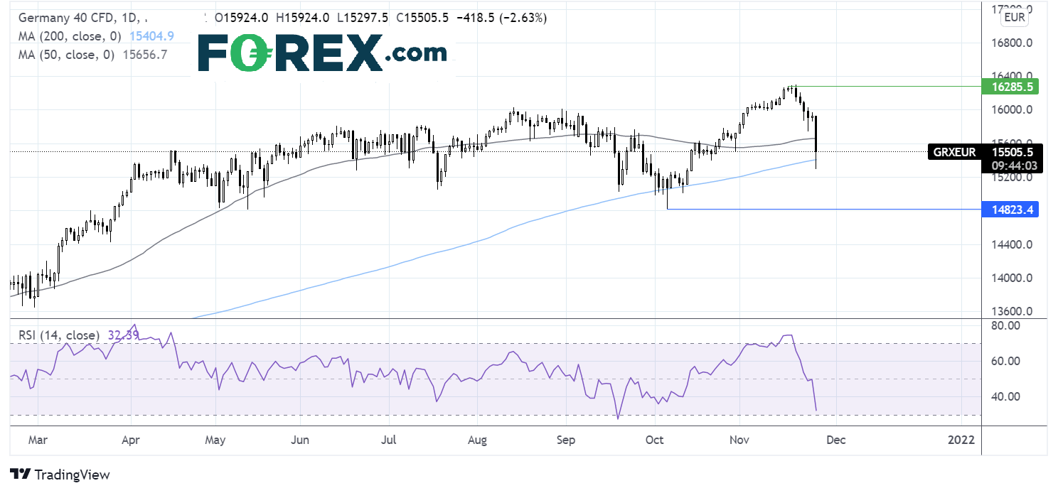 市场震惊之下抛弃风险资产并买入避险资产。在欧洲,FTSE和DAX单日跌幅可能创下年内之最。美国股指扩大自历史高点以来的回撤幅度,而在美国感恩节假期造成的清淡环境中,对高估的估值进行修复可能也在情理当中。