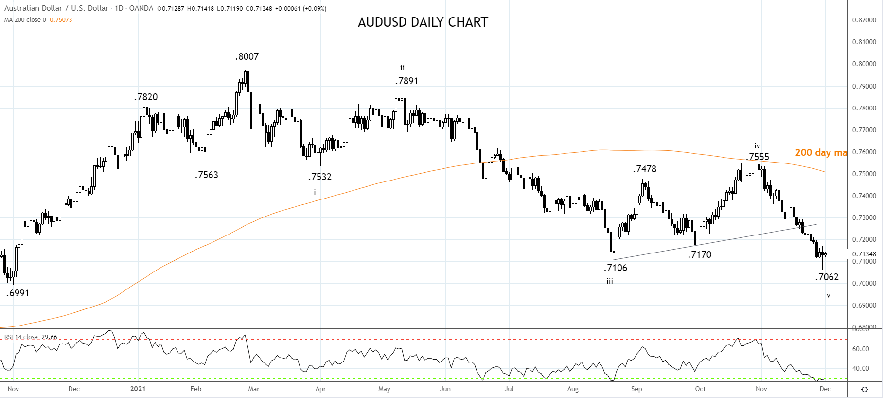 如果澳元/美元交投于0.7170/80阻力位上方,则发出货币对在重拾跌势前或有更大幅度反弹的信号,后市或回攻0.7340。