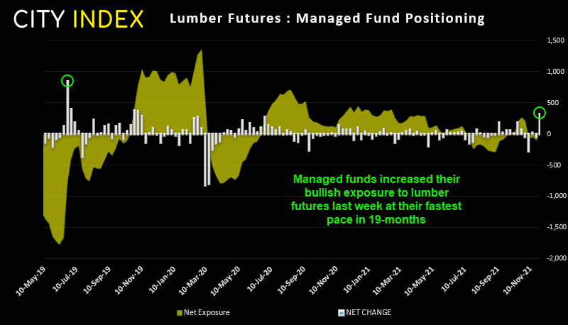 从交易员持仓周报来看,专业基金经理人可能掌握了我们所不知道的木材价格信息。根据CFTC数据,管理型基金以19个月以来最快速度建仓木材期货(期限不定)。报告还显示,管理基金也转向净多头,总空头敞口以11周以来最快速度下降。如果基金经理对木材价格上涨预期正确,供应链通胀压力或进一步加剧(当然也会支撑木材价格)。