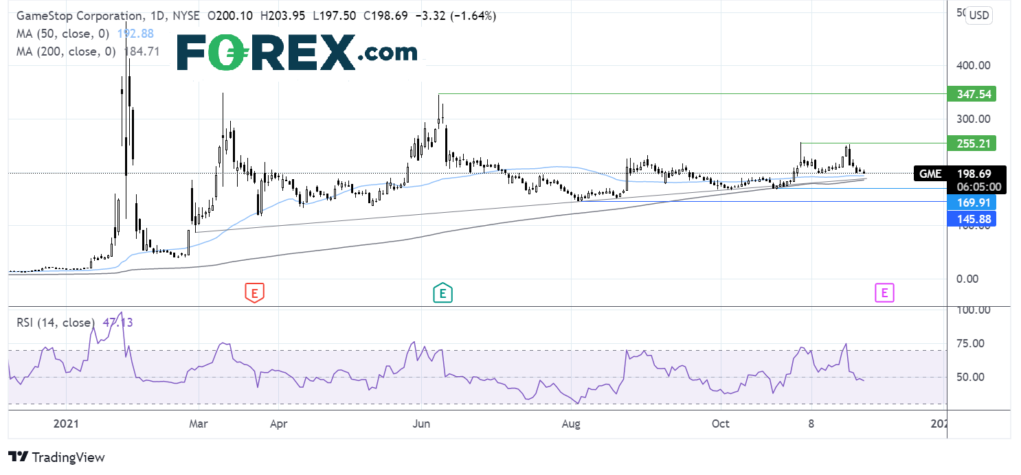 过去一个月,Gamestop交易区间相对狭窄。下档获撑于50200美元和上升趋势线支撑,上档封顶于11月高点255美元。