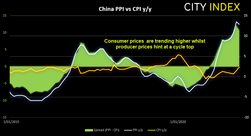 当然,现在下判断还为时尚早,但鉴于全球通胀因素之间长期关联性的存在,这也是美联储等央行希望看到的。因此,他们可能会对中国PPI在10月触及26年高点后降至年率12.9%的消息喜闻乐见。