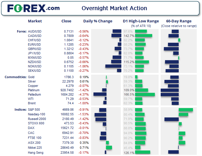 钯金自2020年3月以来首次收于1700下方,从其真实平均波幅判断,距离考验1600也只需一个交易日。黄金缓慢涨至3天高点后在20天指数移动均线处遇阻,而且200天指数移动均线落在1800附近,或难以一击即破。
