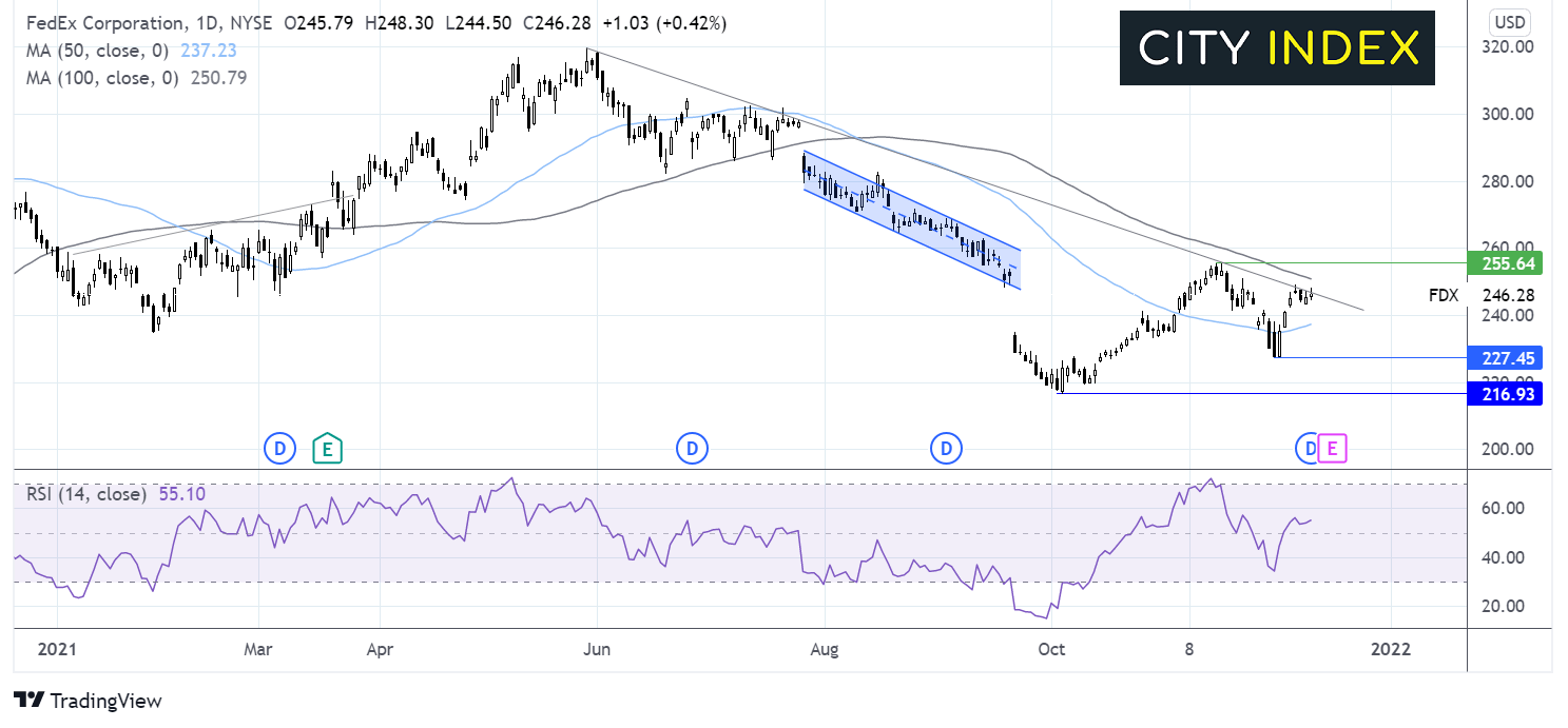 如果站上247趋势线阻力,后市可能上看100天均线所在的250和11月高点255,如果站上255,多头可能进一步发力。