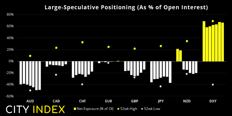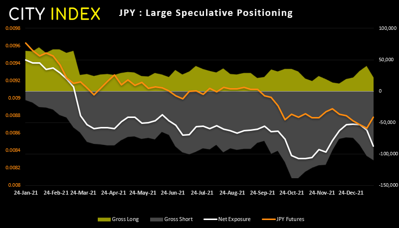 上周,交易员平仓18.4万份日元期货多头合约,增持6.8万份空头合约,这意味着净空头敞口增加了25.3万份。但日元价格此后上涨1.48%,其中大部涨幅出现在周三,也就是我们持仓报告发布后一天。因此,我们可能必须计入其中一些空头头寸已被平仓的可能性。