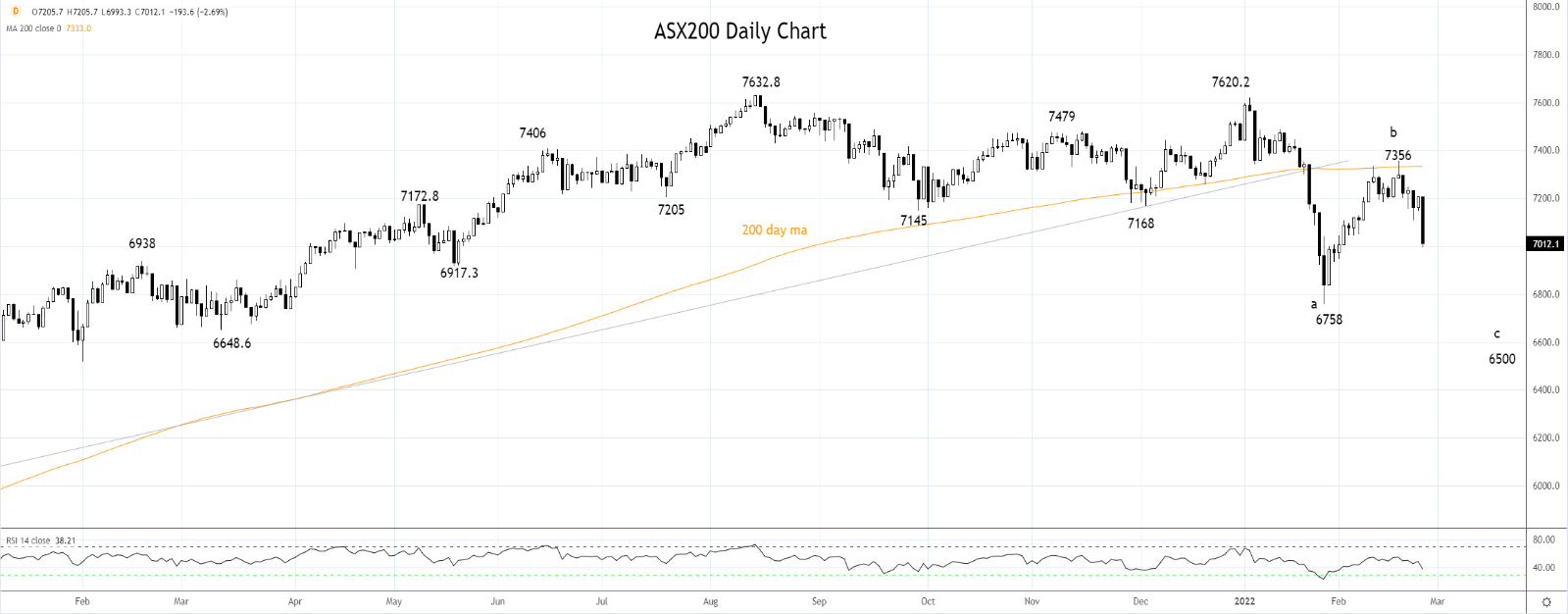 今天下午,普京授权在乌克兰顿巴斯进行特别军事行动的新闻席卷各大头条,人们对俄罗斯全面入侵乌克兰的担忧日益加剧,美国股指期货探入今年以来低点。澳大利亚股市下跌3%,2月1日以来首次下穿7000点。