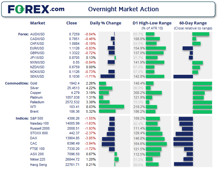 ASX 200昨天开局出色,结局也不错。该指数回吐强劲反弹所斩获涨幅的一半左右,之后收于7100下方。依据美股隔夜走势,ASX200指数今天预计遭遇更多抛压。但从现实来看,该指数仍交投于周四因战争爆发而形成的区间内。也就是说,价格下破6959或上破7208,可能都需要一定级别的催化剂。如果没有,价格可能继续震荡交投。明智的交易者此时不会冲动地建立头寸。