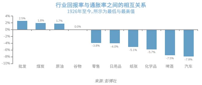 在通胀条件下,逆转通常会真实地发生,因为通胀将控制权向上游转移。具体来说,资源密集型行业的投入成本上升,但是定价权微弱,通常将承受最大损失。以汽车行业为例:制造它们离不开商品(金属、橡胶、塑料等等)和劳动力。汽车制造商这两项成本的价格都提高了,但是市场的竞争特性又限制了他们将提高的成本转嫁给消费者的能力。