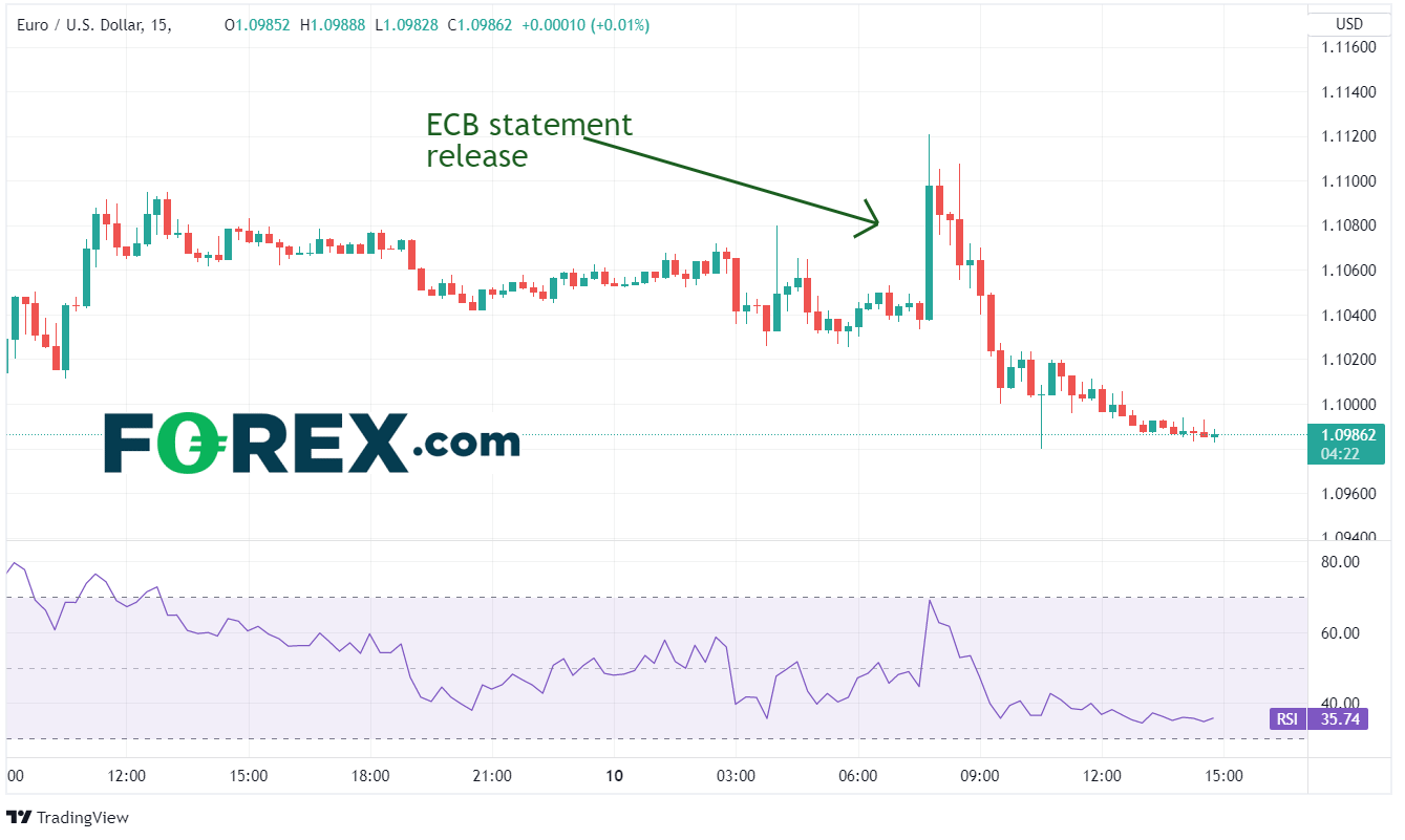 欧洲央行一方面因为通胀上升而承诺加快债券购买减码的节奏,另一方面上调对通胀的预测值、下调对成长的预测值。市场认为这属于利空,所以在最初的买入后选择沽出欧元/美元。请留意该货币对是否守住前低点与长期趋势线。