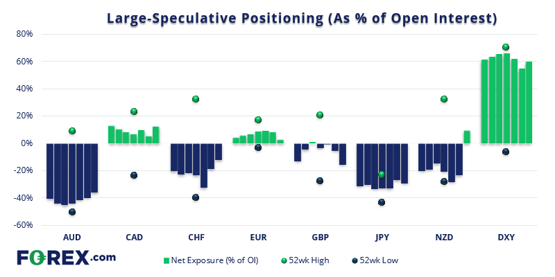 - 值得注意的是,欧元期货的净多头持仓同样减少,至9周最低点。