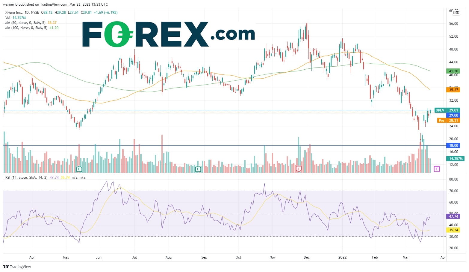 小鹏汽车股价12月开始直线下挫,最终在3月14日创下18个月新低18美元。但此后因中国政府干预引领中国股市普遍反弹,股价反弹了45%以上。
