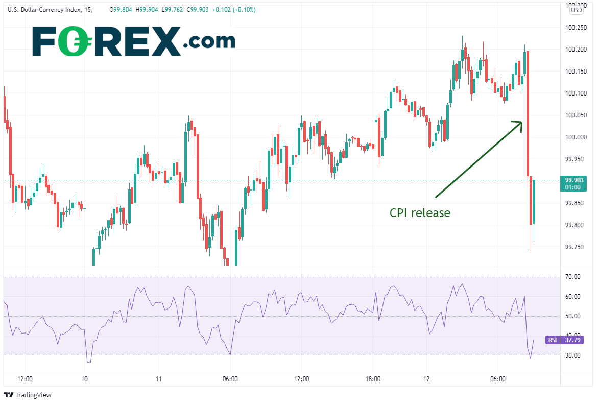 白宫在昨天警告,CPI读数可能强劲,很多人因此认为结果高于预估。看到结果后市场显然松了口气,美元随后走弱。美元指数自100.20下跌至99.74后回升。