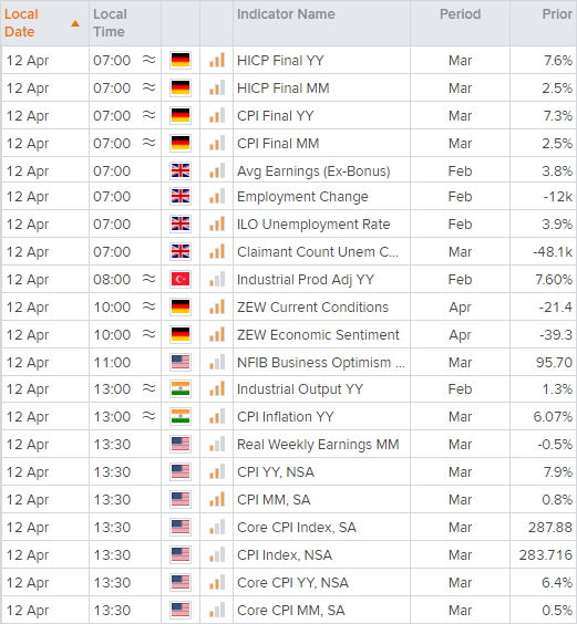 美国通胀数据是今天的主要事件,预计年率自7.9%上涨至1981年12月以来最高点8.5%;剔除食品与能源的核心CPI预计自6.4%升至6.6%。CPI不断攀升早就众所周知,所以通胀真实水平不再能够搅动市场心绪,相反通胀回落所需要的时间以及美联储加息是否会导致经济衰退,才是最能牵动神经的大问题。10年期和2年期债券收益率最近倒挂,暗示债券交易者预计经济在2023年的某个时候衰退,即使倒挂只持续了两天。交易者计入5月加息的几率为82%,如果今天的通胀数据再度火热,这个数字可能上升。