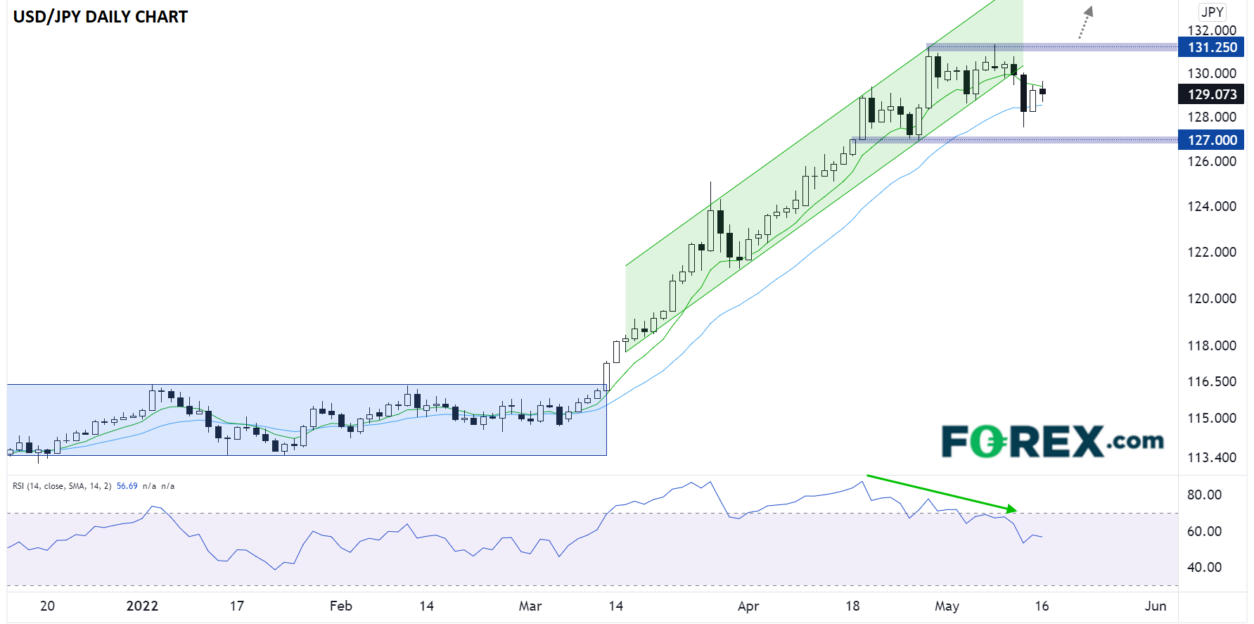 此文发稿时,美元/日元的关键支撑位在1个月低点127.00附近。如果守住该区域,动能仍然站在多头这边,价格或站上131.25,创下20年新高。后市上档主要阻力在135.00附近,那是1998年以来最高点。
