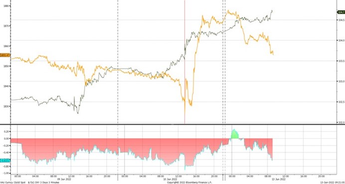 美元指数 - 加权美元指数与现货黄金,3天视图