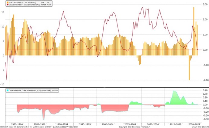 美国2年期和10年期债券收益率曲线与美国GDP;路径加相关性