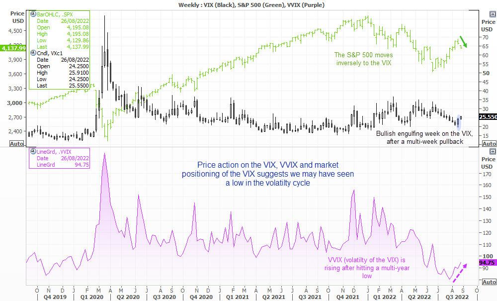 我们已经在昨天的交易员持仓报告中指出,大型投机者增持VIX净空头。即,投机者认为波动性将保持在低迷。事实上,大型投机者的净空头持仓处于2021年11月以来最高点。这样的水平从历史标准看并不极端,但VIX在净空头持仓处于当前价位附近时启动了数周反弹。也就是说,当VIX上涨时,大量空头将回补头寸。这也正是杰克逊霍尔大会召开前的市场情况。