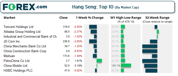 另外,在负面情绪包围中,恒指昨天假性下破19,200支撑区域且当天收出一根锤子阳线。值得注意的是,锤子阳线形成并收于关键支撑位之上,也收上周图第一支撑中枢。而且,RSI与价格形成看涨背离。