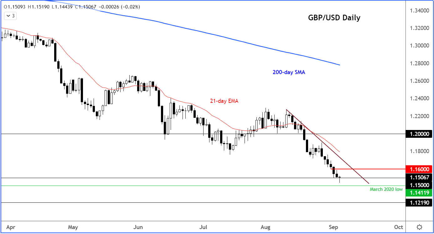 在我看来也有好消息,那就是英国经济正处于谷底,有触底反弹的希望。英镑也是如此。英镑/美元目前落在1.15整数位,相比2020年疫情高峰期创下的低点高出100个点子左右。接下来几天交易者会进一步压低英镑吗?考虑到英镑/美元截至目前的跌幅之巨,我觉得一切皆有可能。但价格目前严重“超卖”,展开某种形式的盘整可能也在情理当中。
