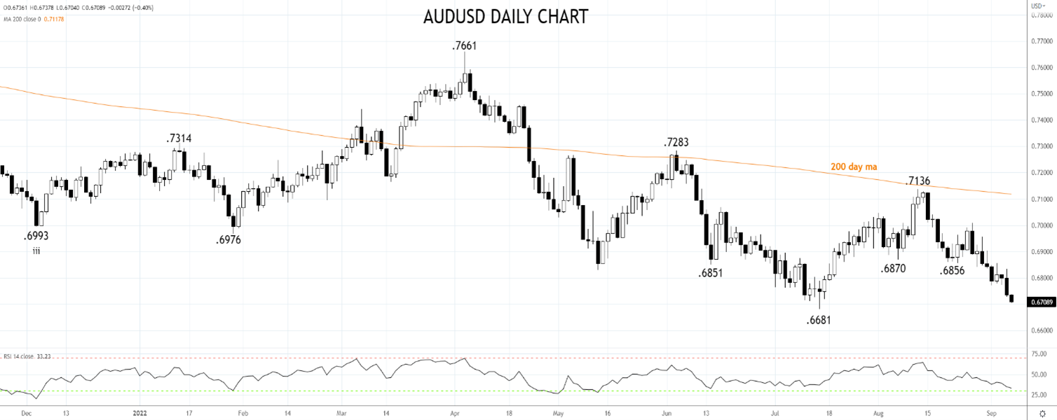澳元/美元周初未能攻克0.6850/70阻力,目前下探0.6681低点,未能扛住美元大涨的压力。