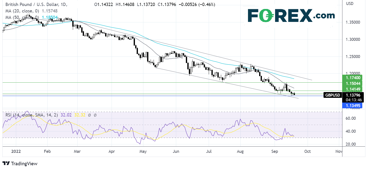 那么,央行周四会因此做出改变吗?市场目前计入加息50个基点。在特拉斯大力支持控通胀工作之际,央行仅仅加息50个基点会不会被信心萎缩的市场认为偏温和?在美联储预计加息75个基点的背景下,英国央行如果只是加息50个基点,可能推动英镑/美元下探1.13。而且,即使英国央行加息75个基点,也不大可能帮助英镑/美元摆脱颓势。