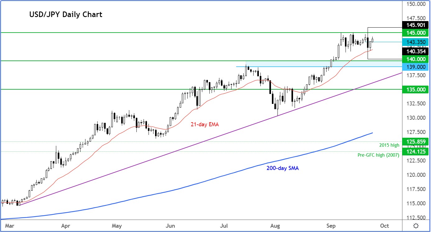 英镑周一遭遇小型闪崩,创下历史低点,吸引了所有人的注意。但我们也不要遗忘日元,其最近同样在暴跌,使得日本政府上周入市干预,阻止日元下跌或约束“过度的波动性”。按日本当局的说法,担心招来美国的指责。然而,在政府介入并警告会推出更多举措对抗日元过度波动的同时,美元/日元却企稳并再度上攻145整数位。该位证实为日本的警戒位。现在的关键问题是:日元后市会怎么走?会不顾政府干预继续下跌吗?