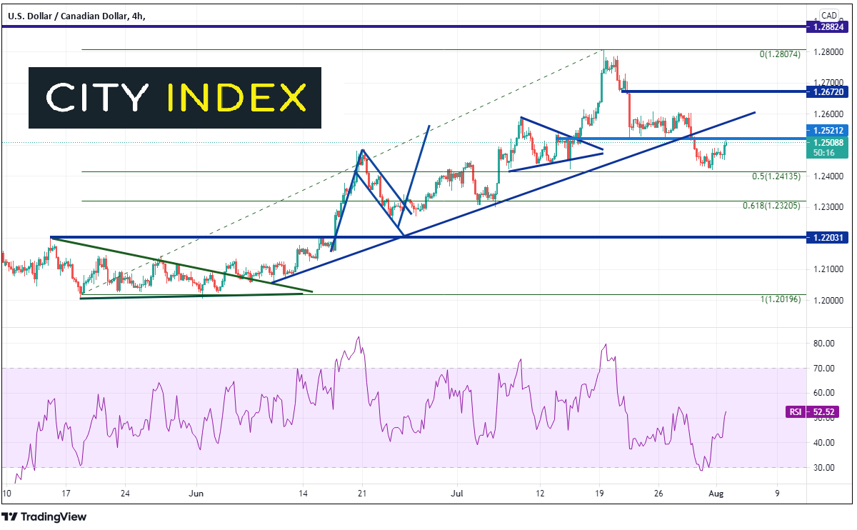 美元/加元走势与原油背道而驰。今天原油抛售,美元/加元走高,自1.2468攻入1.2515高点。但240分钟图表显示,在回撤3月18日低点至7月19日1.2414附近高点上行之50%涨幅后,货币对展开反弹。美元/加元剑指1.2512水平阻力位。上方阻力落在6月9日以来上斜趋势线1.2570附近。若拿下,水平阻力在1.2672附近。支撑位见于1.2414附近近期低点,1.2320一线前述时期走势之61.8%回档位。接下来水平支撑位在1.2320。