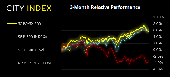 ASX200指数连跌3天,下跌动能正在减弱,昨天的十字星收上20天指数移动均线和月图第一中枢阻力位。然而,期货市场指向低开于7445支撑位附近。所以,早盘在该位附近的走势可能奠定全天基调。如果空头继续占据主导,多头下道防御线在7400。