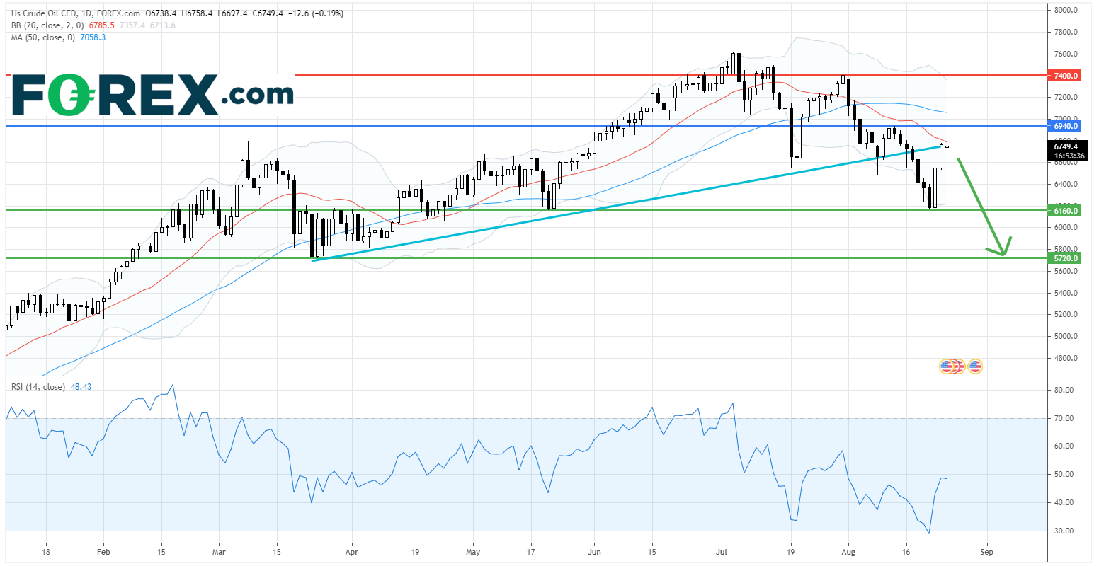 只要看跌的主要阻力 (止损) 位6,940点不破,料美国原油CFD将下试6,160点和5,720点。