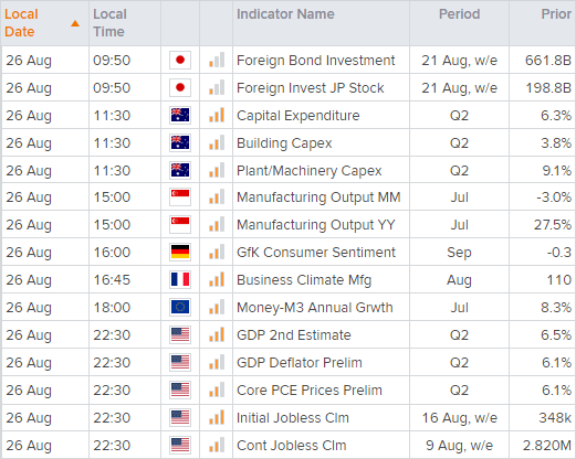 今天需要关注的关键事件(如果读者还没睡)是AEST时间明天02:00(英国夏令时15:00,即美东时间10:00)鲍威尔的主题演讲。但今天11:30,澳大利亚将发布三季度资本支出报告。在封锁期延长、GDP预期萎缩的背景下,该报告如果意外好于预期,有望令澳洲联储安心。不过,该报告二季度就意外上升过,从当前环境来看,好于预期的想法可能只是镜花水月。