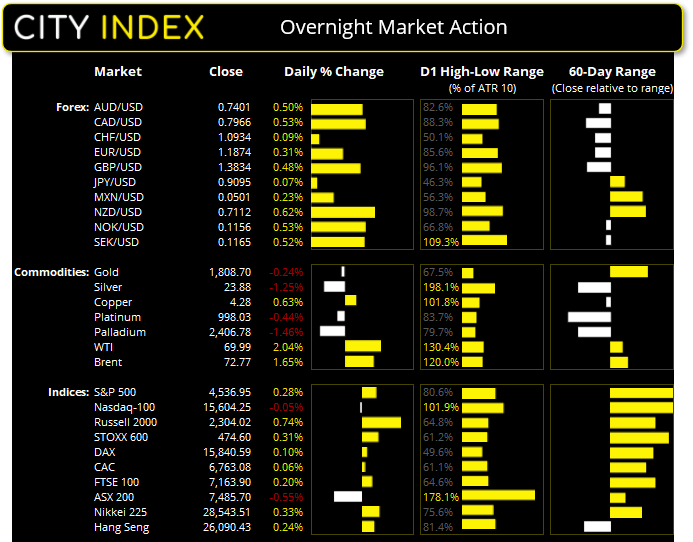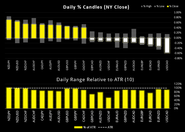商品货币是隔夜最强主要货币,其中纽元、澳元和加元为涨幅居前三的货币。