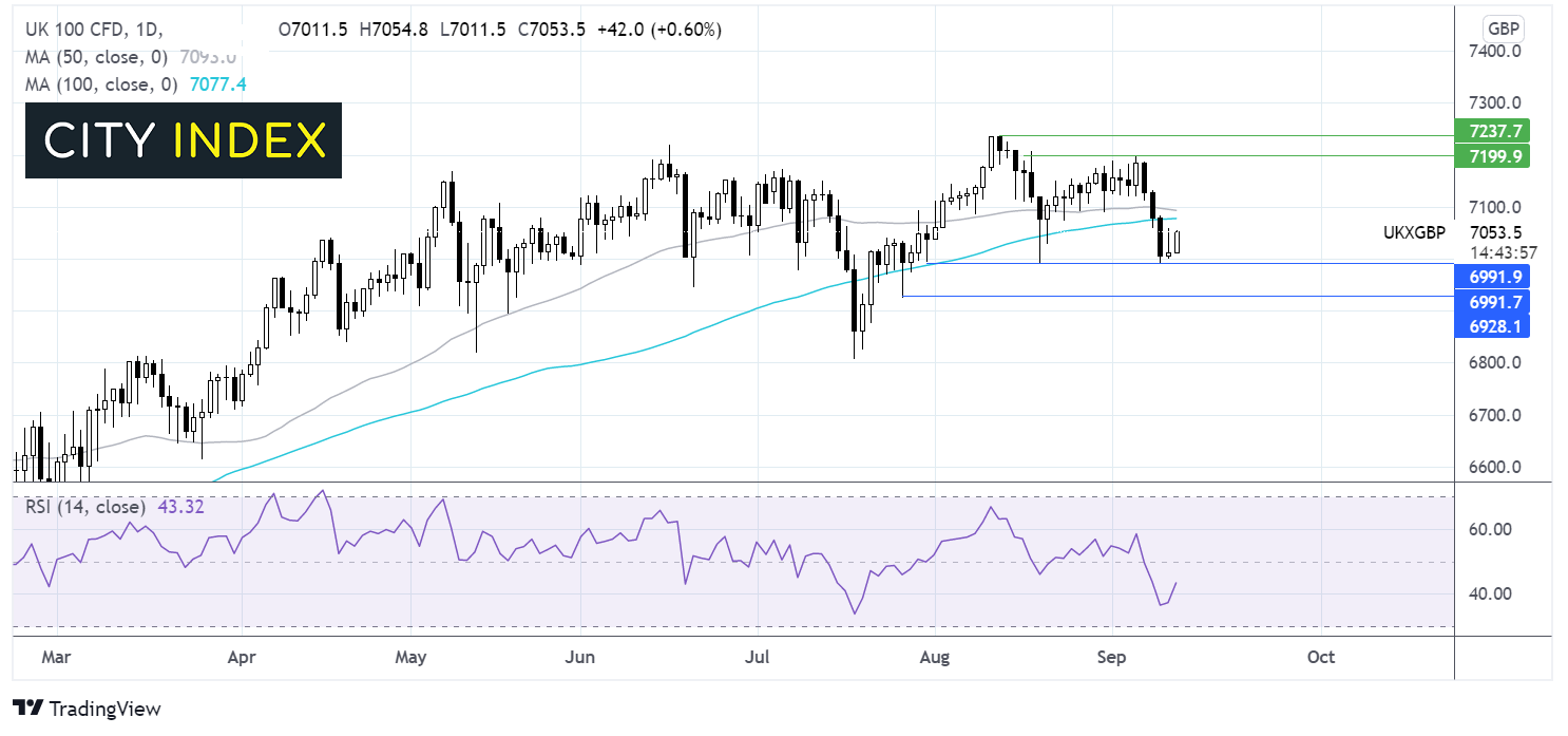要逆转上述看跌趋势,给予多头上攻7200和8月高点7235的能量,可能需要站上50和100天均线所在的7085/7090。下档方面,如果下破7000,可能打开跌至7月27日低点6930的空间。