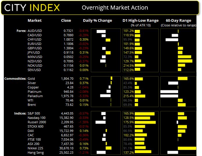 对于澳洲联储主席Lowe昨天的讲话,交易者似乎有点失望。他说,考虑到三季度成长预计萎缩、薪资增长乏力、澳大利亚通胀没有跟上全球趋势,不理解市场对2022年底/2023年年初加息的预期。澳元/美元昨天形成看跌吞噬K线,坚定地收在20天指数移动均线和38.2%回档位下方。相对强硬的新西兰联储,澳洲联储的立场依然温和,澳元/纽元昨天因此跌至2020年4月以来最低点1.30。