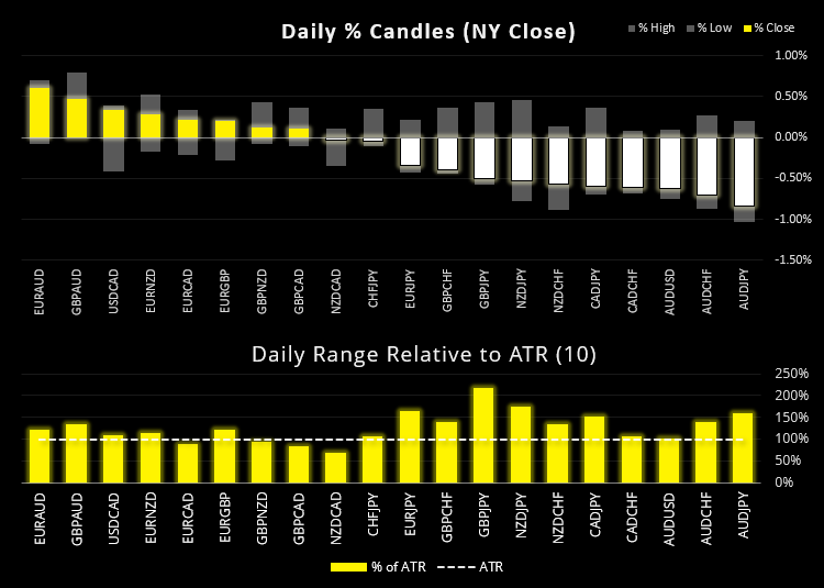 纽元/日元多次未能收上78.50,过去两周始终在78.65遇阻。所以,昨天在高位形成的看跌吞噬K线暗示下行可能加速,特别是如果整体冒险情绪减退的话。