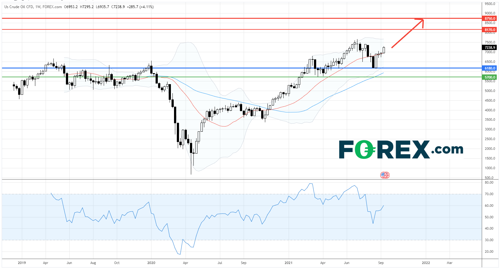 美国原油CFD第三季度在6200点和7600点之间交投。市场主要聚焦新冠疫毒的疫情会否防碍原油需求的復甦。