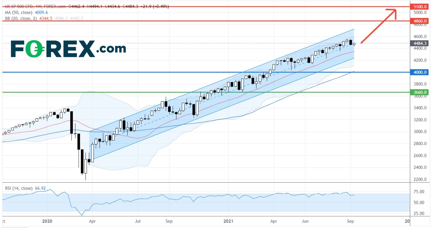 正在上升中的20周移动均线 (价格下方的细红线) ,仍然为标准普尔500指数CFD提供了坚实的支撑。