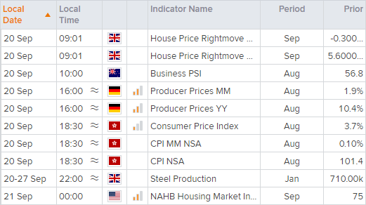 今天是日本、中国和韩国的公共假日,而且明天中国市场将继续因假期休市,亚洲交易时段交易量走低。由于美国股市上周五收低加之恒大集团深陷困境,其他正常交易的市场交投情绪依然脆弱。恒大股价今天跌幅高达18%(目前下跌16.9%),今年迄今累计下跌85.9%。恒生指数表现最差,遭遇近两个月来最为看跌的一个交易日,跌幅4.1%。ASX 200指数下跌1.9%,创两个月新低。
