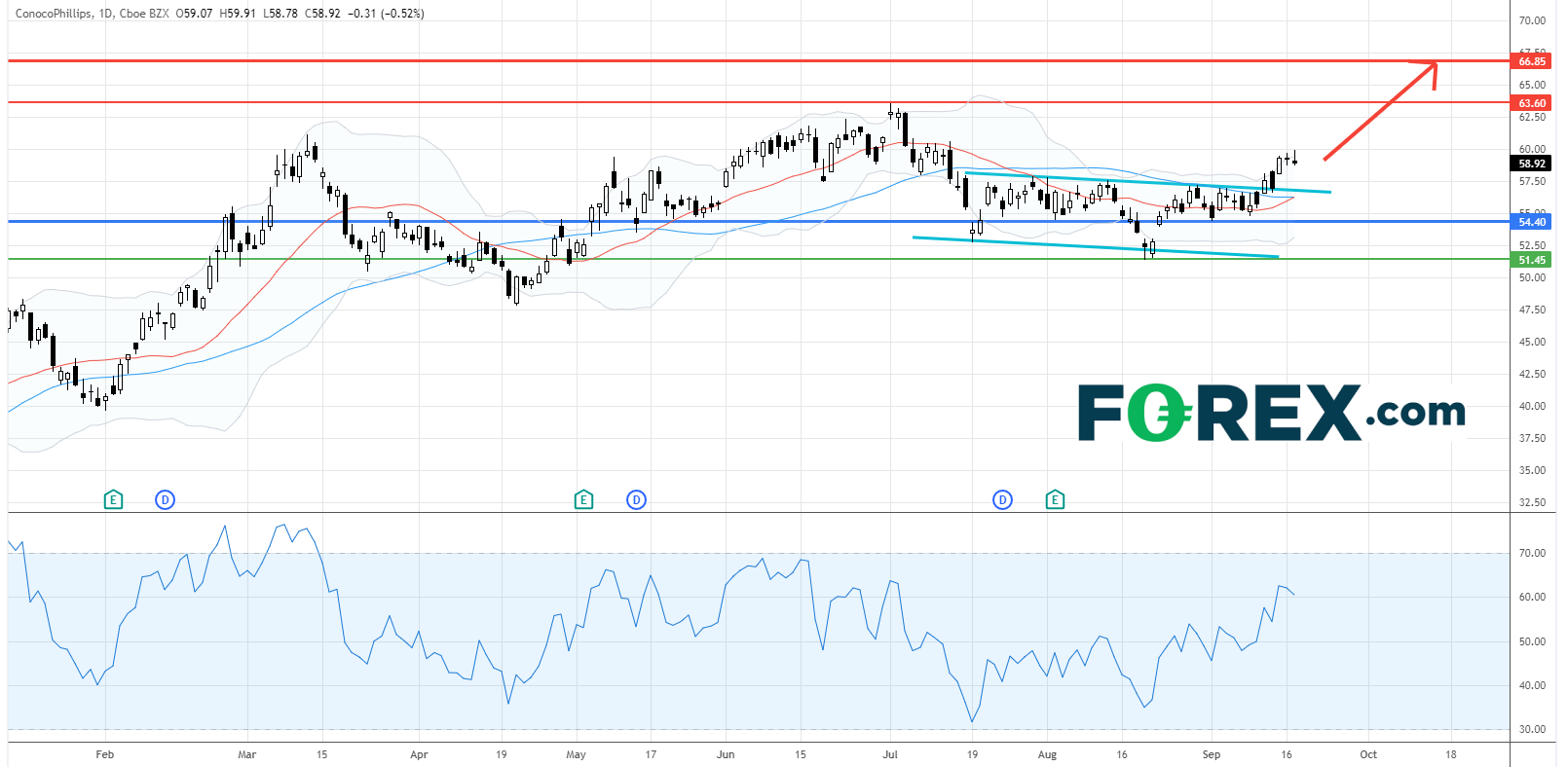 康菲石油 ConocoPhillips (COP.US) : 先看反弹至今年高位63.60美元