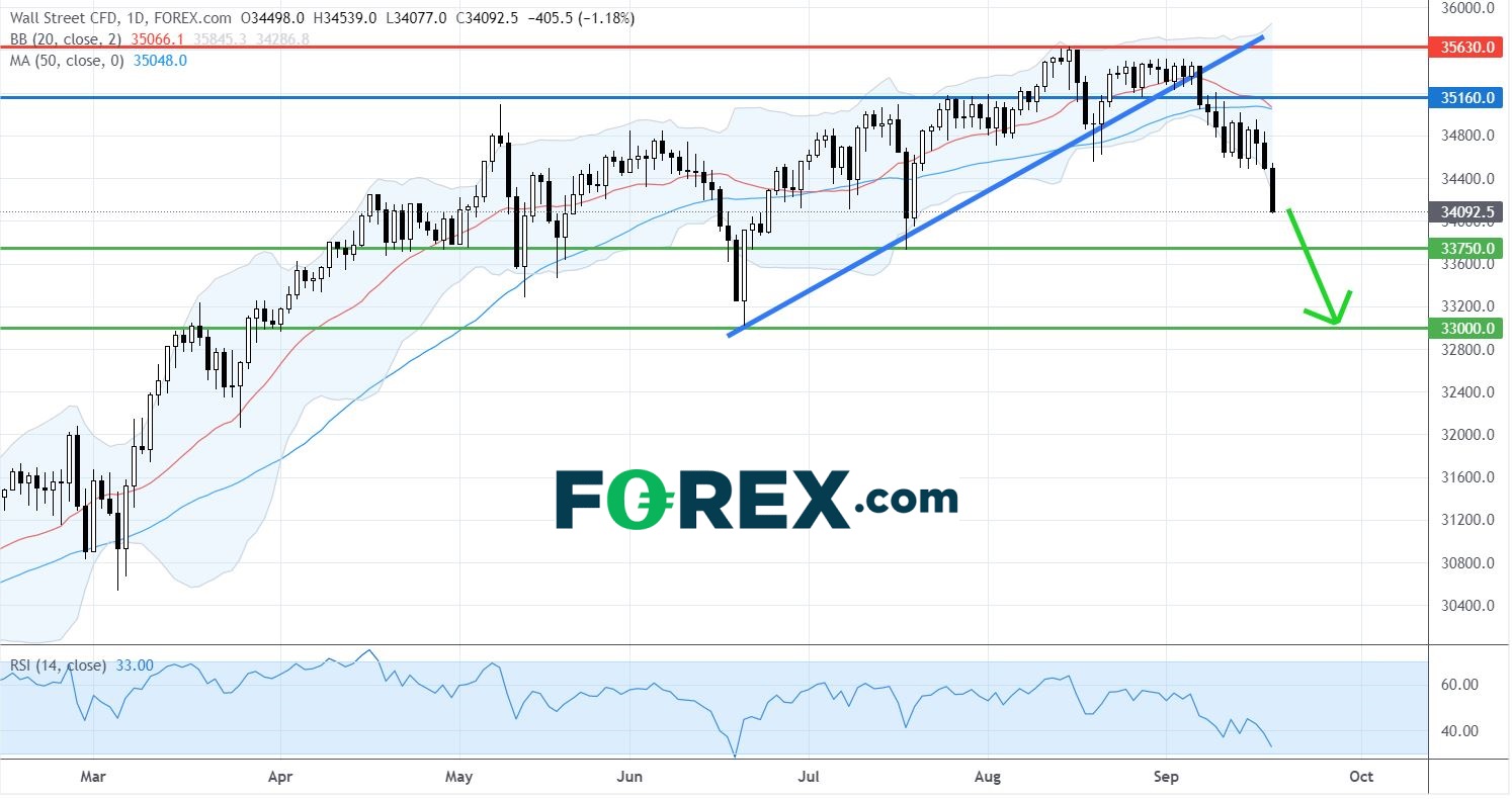 美股华尔街指数CFD:整固型态,短期支持位33,750点