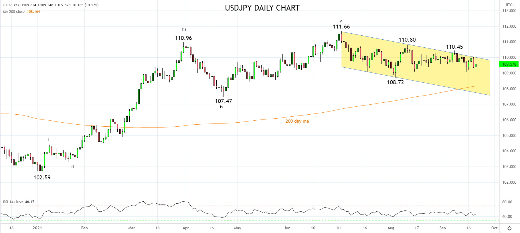 请注意,受制于110.40/50阻力下方的话,有机会在重拾上涨趋势之前回踩108.72低点。