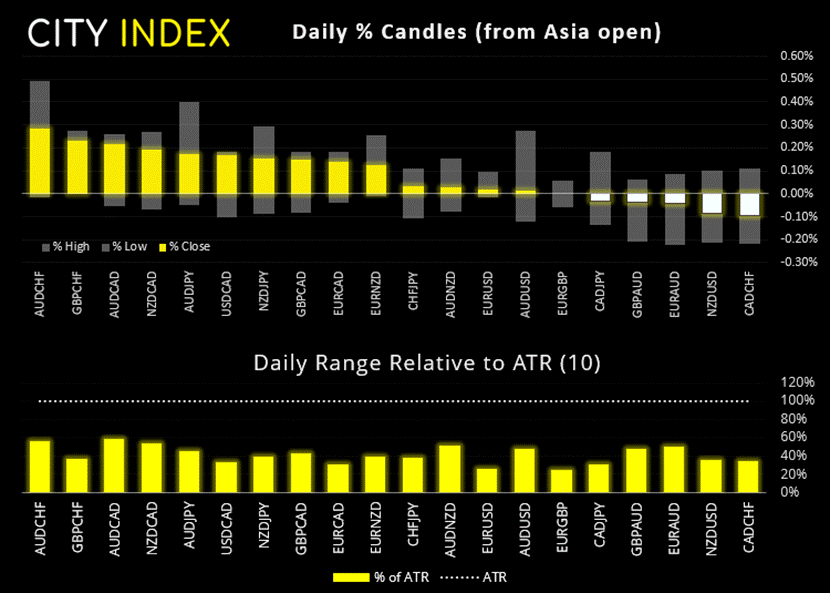自9月7日跌破趋势支撑位以来,富时指数一直在同一关键水平附近波动。股指自7月低点的反弹于7000暂停,并在第二天冲高并测试7090,然后昨天的突破走势在即将触及9月7日下破的7138.35支撑位时停滞(然后收于7090下方看跌pinbar)。因此,这些水平在周末前仍非常关键。请注意,股指本周正准备构筑一条看涨吞没/外包线,于200和50EMA均线获撑,若今天收盘强劲,未来几周或倾向走高。股指甚至还可能再度尝试拿下上述周期高点。就今天而言,7060和7030是多头需要防守的关键支撑位。若无新的驱动因素,今天可能很难再次录得坚实涨幅。